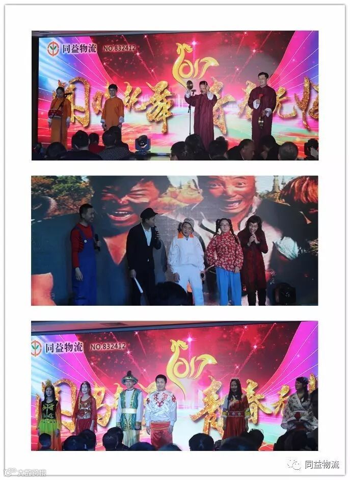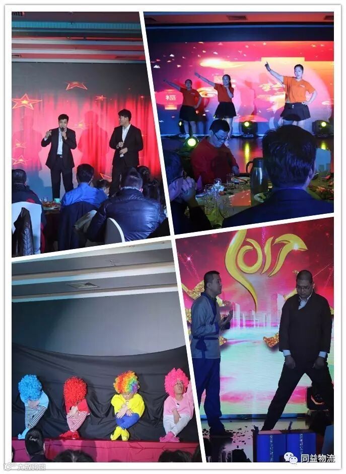 本次年会精彩纷呈,高潮迭起,各子公司、各部门带来了形式各异、热情奔放的表演,给来宾们带来了一场震撼的视觉盛宴。赣榆海岸线的舞蹈《踩踩踩》跳出了大家对2017年的幸福憧憬,将欢乐的气氛传达给了每一位员工;集装箱部的小品《新白娘子传奇》、《拍戏风波》、多式联运部门的《三句半》、《功夫》、财务部的脱口秀《新闻晚知道》、金创物流的相声《参观同益物流》及证券部的《评书讲坛》等语言类节目,亦庄亦谐,张弛有度,带来阵阵笑声;外勤部门带来的歌曲《闯码头》展现外勤员工们不辞劳苦、斗志昂扬;报关行、行政部携手带来的幕布剧《小人舞》充满新意,让人眼前一亮,充满童趣;港港通的《丝路奇遇》切合“一带一路”主题,给晚会带来一丝新意;最后,全体员工合唱的《同益岁月》表达了同益人对未来的信心与憧憬。