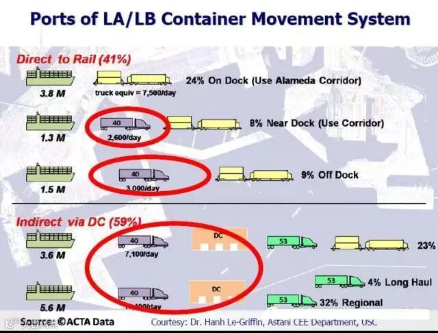表1 美国洛杉矶-长滩(LA/LB)集疏运比例