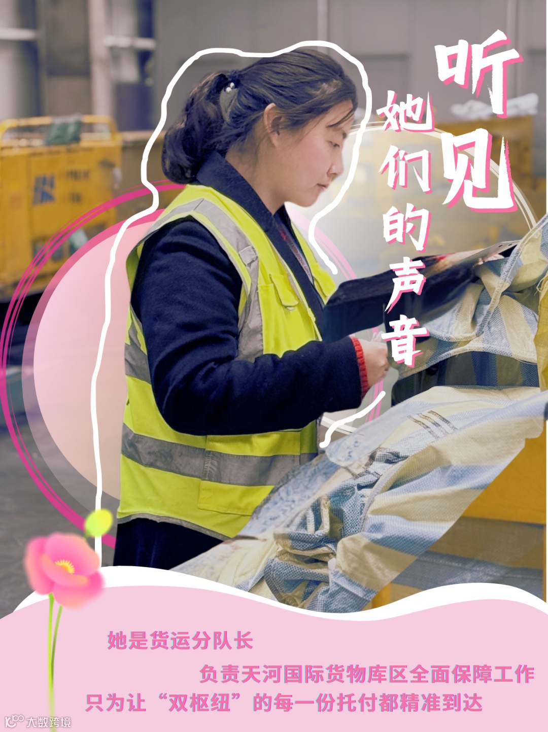 胡雅婷负责花湖机场北区国际货站单证岗工作。在保障航班数据过程中,配载单日最高货量600吨,配载单日最高航班架次14架;包括但不仅限于锂电池,电商货以及“空空中转”的带电货物。