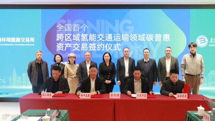 在上海环交所、嘉兴市交通运输局、嘉兴市生态环境局等相关单位代表的共同见证下,全国首个跨区域氢能交通运输领域碳普惠资产交易正式签约。该笔碳普惠资产由浙江羚牛氢能科技有限公司持有,在上海环交所的推动下,顺利匹配到购买方江苏华昌化工股份有限公司。此次交易的达成,是我国首个跨区域碳氢供需合作的成功案例,对碳交易持续赋能氢能产业发展具有重要意义。