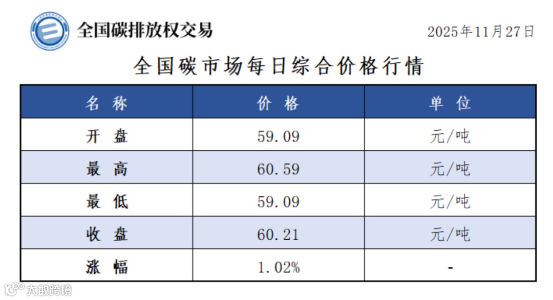 2025年1月1日至11月27日,全国碳市场碳排放配额成交量185,231,032吨,成交额11,411,665,579.55元。