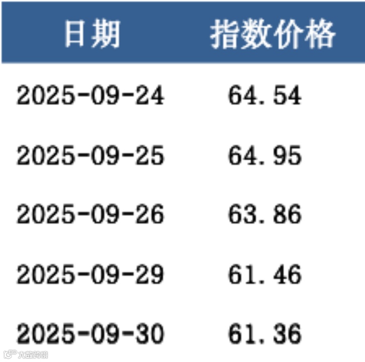 碳价格指数为61.36元/吨,较上一交易日指数价格下跌0.16%。指数历史数据如下表所示:
