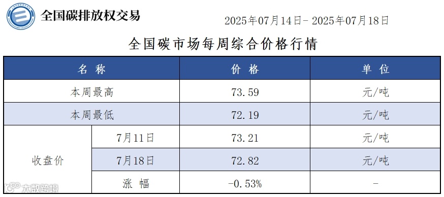 本周全国碳排放配额总成交量2,465,914吨,总成交额181,427,402.63元。
