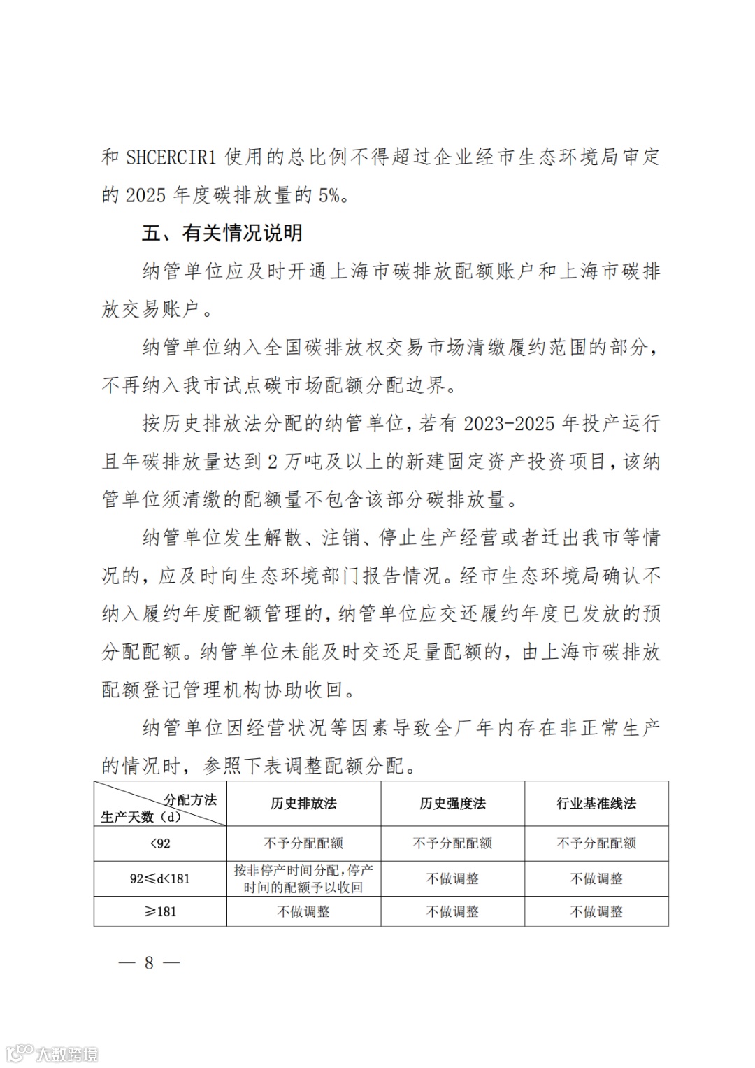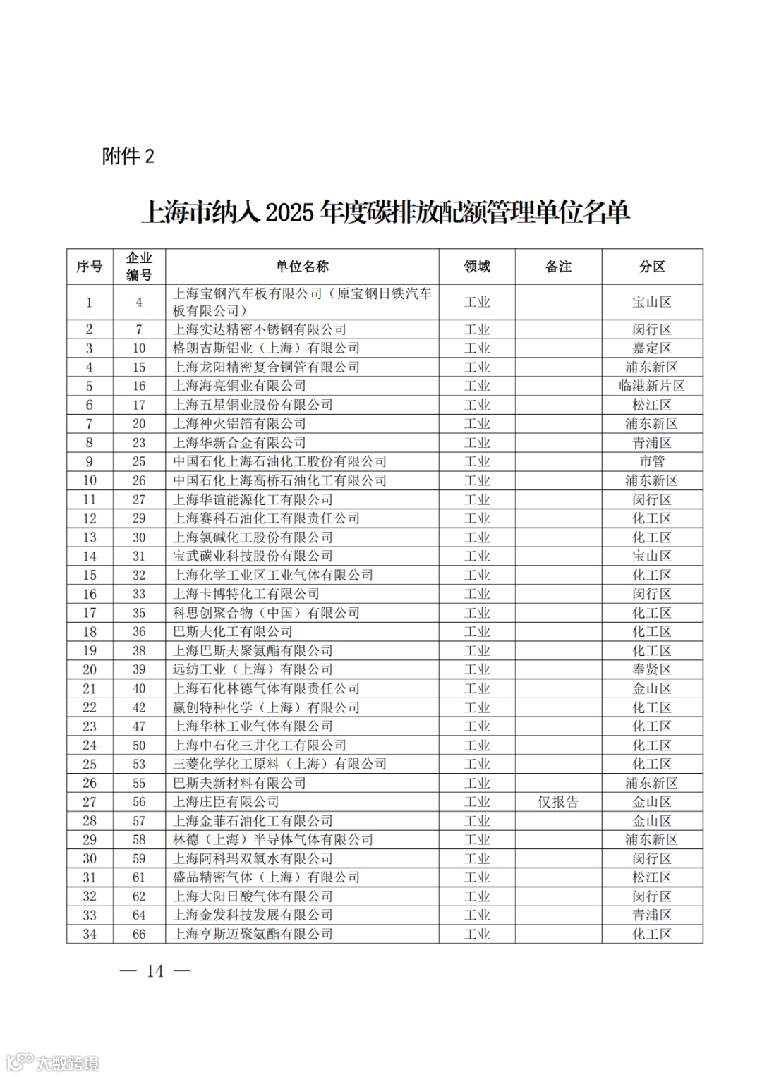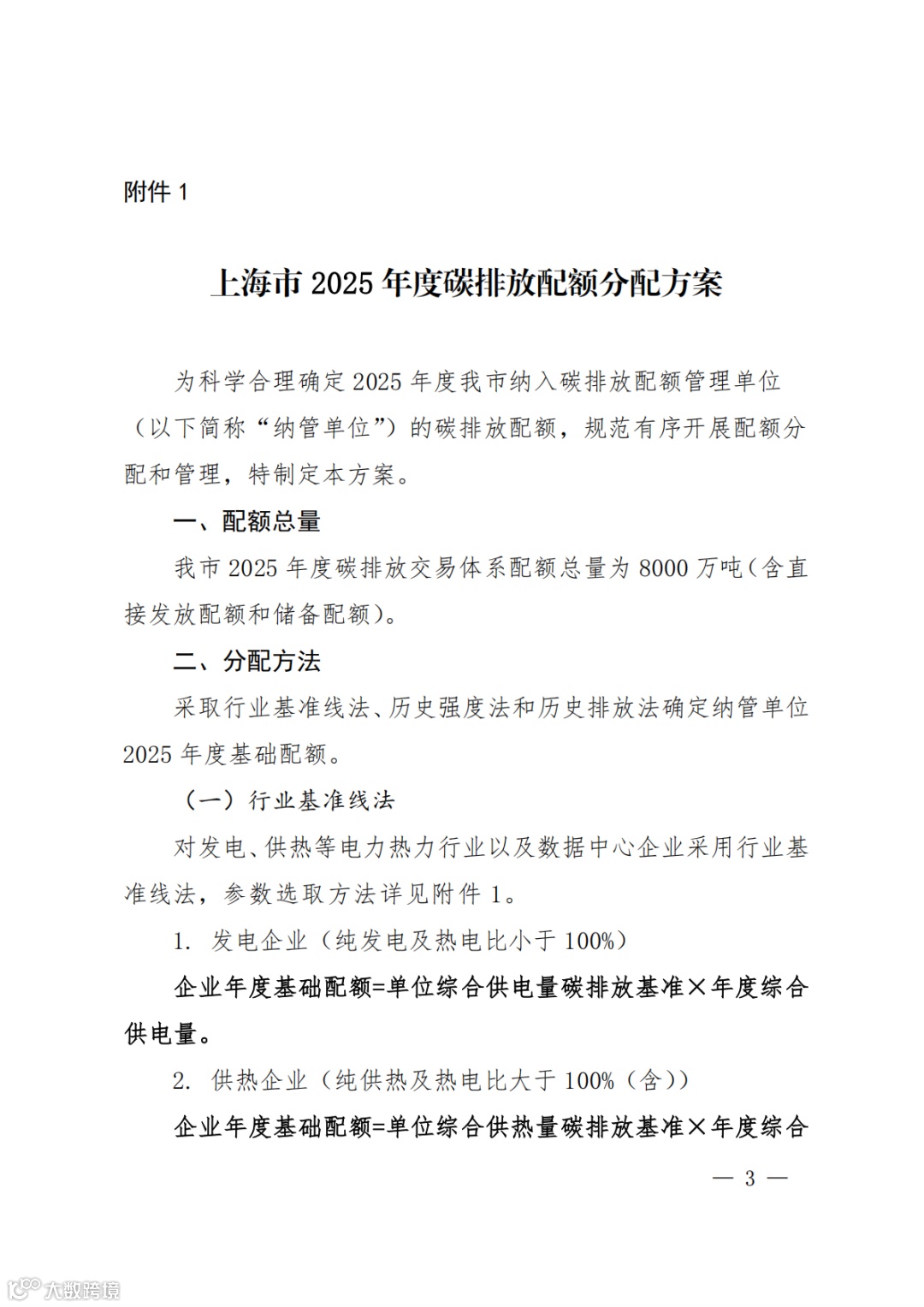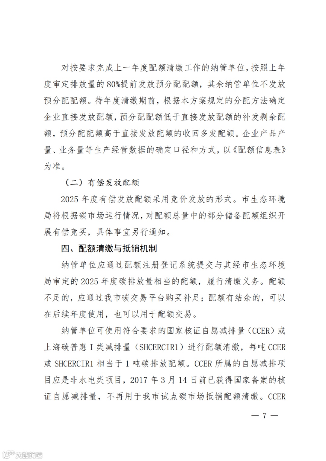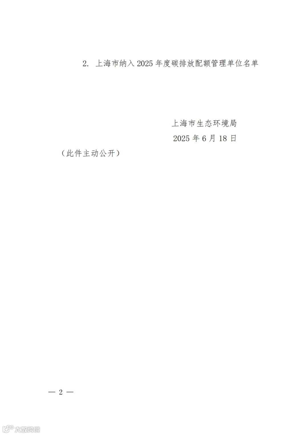 【关注】上海市生态环境局关于印发《上海市2025年度碳排放配额分配方案》和《上海市纳入2025年度碳排放配额管理单位名单》的通知