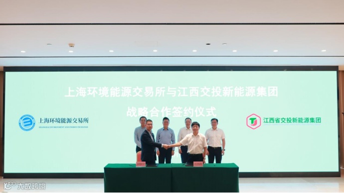 2025年6月12日,上海环交所与江西省交投新能源集团有限责任公司(以下简称“江西交投新能源集团”)在上海举行战略合作协议签约仪式并交流座谈。江西省交通投资集团有限责任公司(以下简称“江西交投”)党委书记、董事长谢兼法,上海环交所董事长赖晓明见证签约,江西交投新能源集团董事长周建文、上海环交所副总经理彭峰代表双方签署协议。