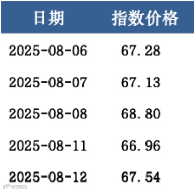 碳价格指数为67.54元/吨,较上一交易日指数价格上涨0.87%。指数历史数据如下表所示: