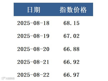 碳价格指数为66.97元/吨,较上一交易日指数价格上涨0.07%。指数历史数据如下表所示:
