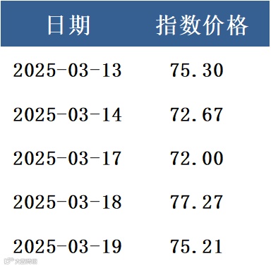 碳价格指数为75.21元/吨,较上一交易日指数价格下跌2.67%。指数历史数据如下表所示: