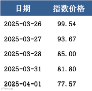 碳价格指数为77.57元/吨,较上一交易日指数价格下跌5.17%。指数历史数据如下表所示: