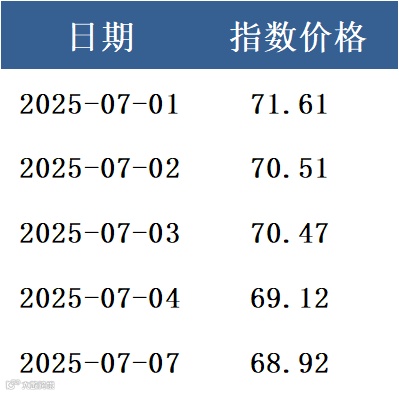 碳价格指数为68.92元/吨,较上一交易日指数价格下跌0.29%。指数历史数据如下表所示: