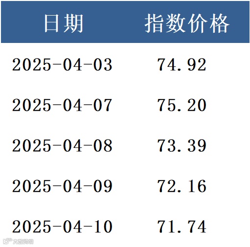 碳价格指数为71.74元/吨,较上一交易日指数价格下跌0.58%。指数历史数据如下表所示: