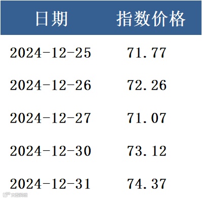 碳价格指数为74.37元/吨,较上一交易日指数价格上涨1.71%。指数历史数据如下表所示: