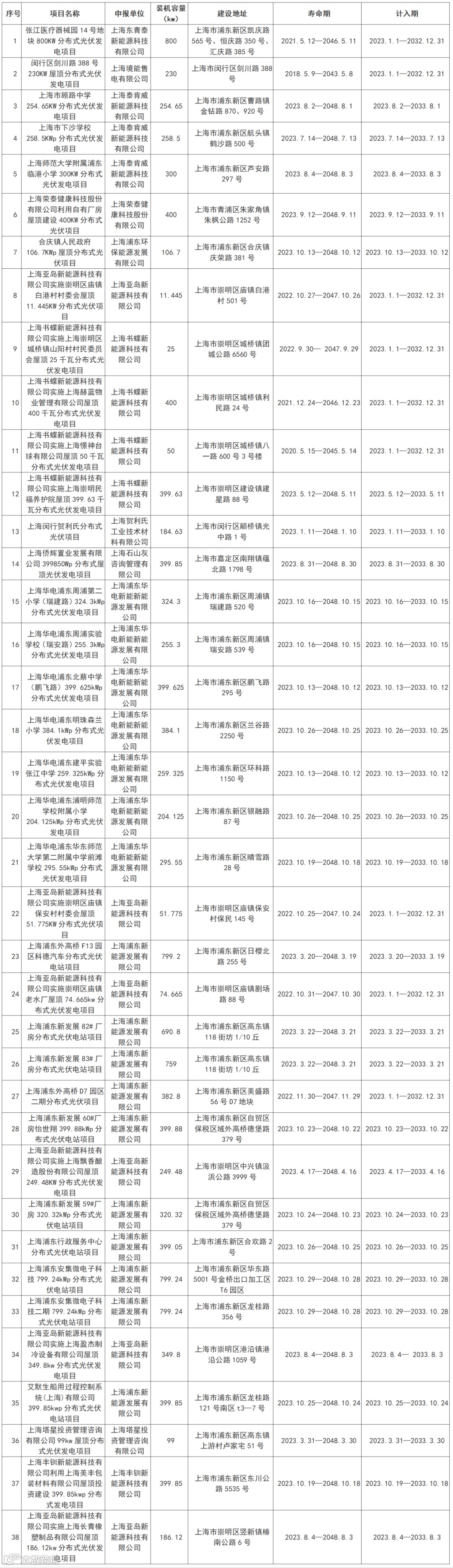 附件:上海碳普惠分布式光伏发电第八批减排项目清单