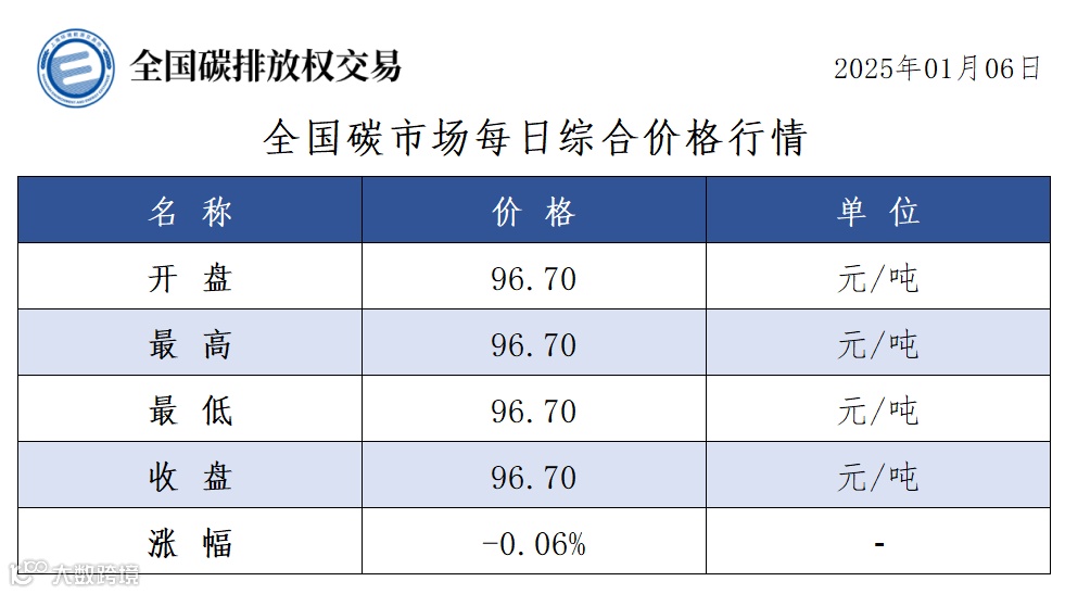【全国碳市场行情】全国碳市场每日综合价格行情及成交信息20250106
