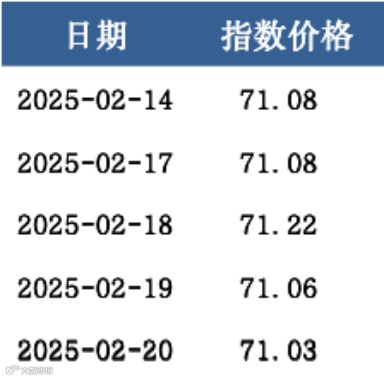 碳价格指数为71.03元/吨,较上一交易日指数价格下跌0.04%。指数历史数据如下表所示:
