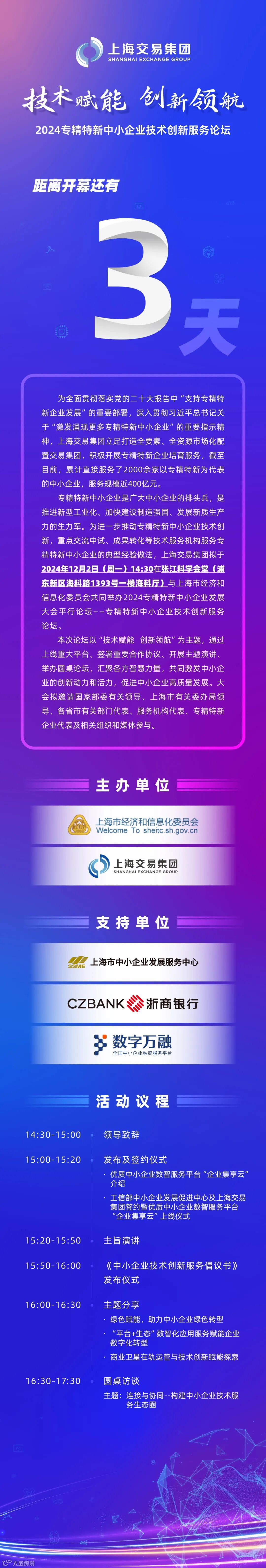 【交易集团动态】倒计时3天|2024专精特新中小企业技术创新服务论坛即将揭幕