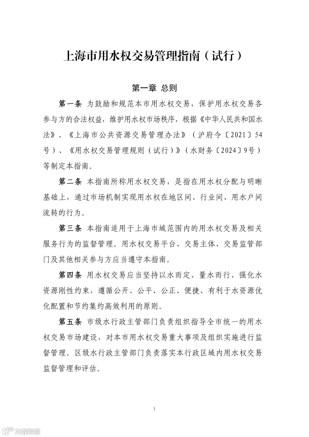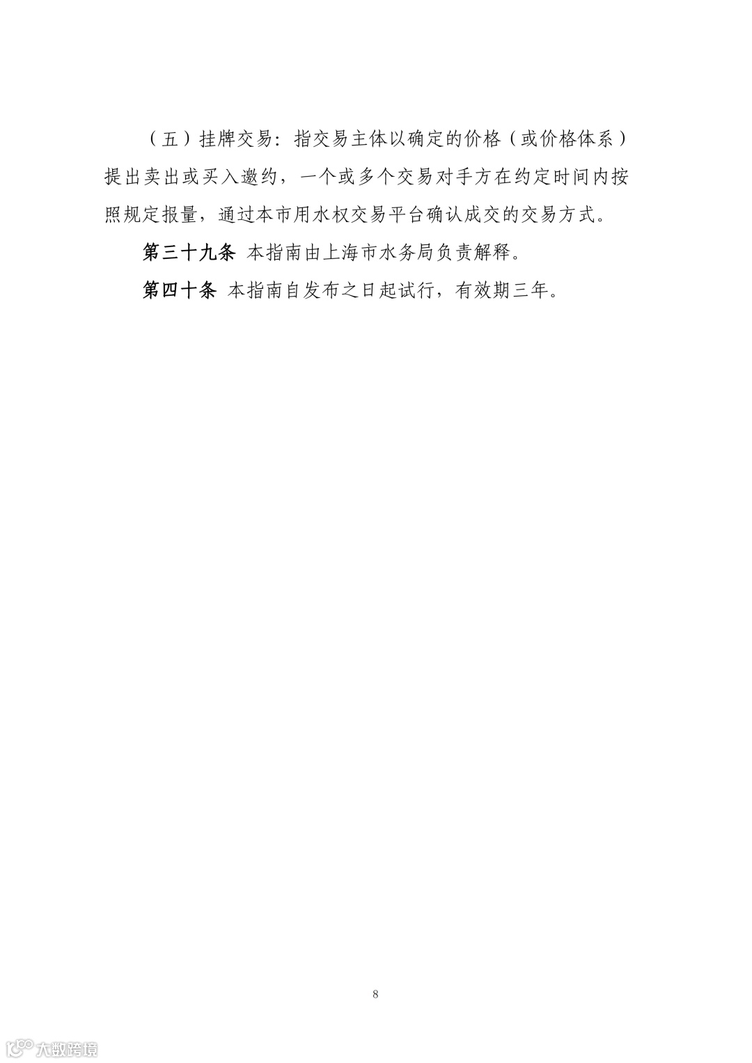 【重点关注】上海市水务局关于印发《上海市用水权交易管理指南(试行)》的通知
