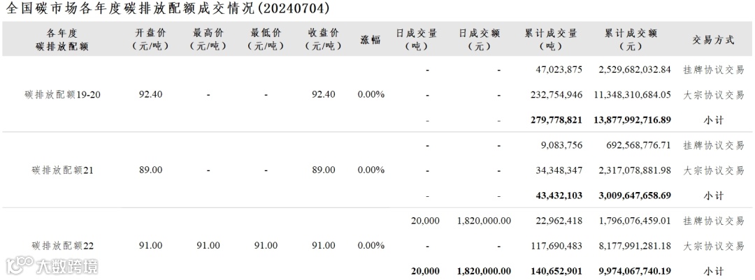 【行情】全国碳市场每日综合价格行情及成交信息20240704