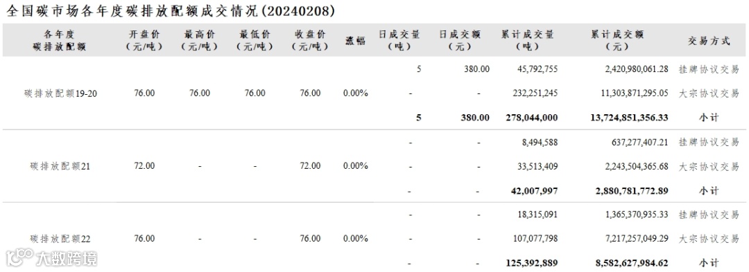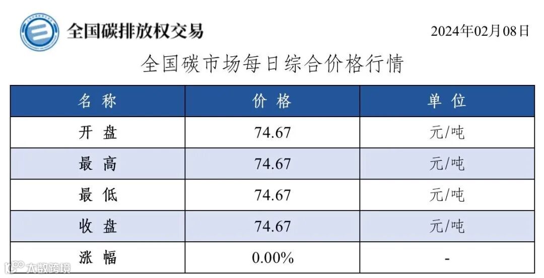 【行情】全国碳市场每日综合价格行情及成交信息20240208