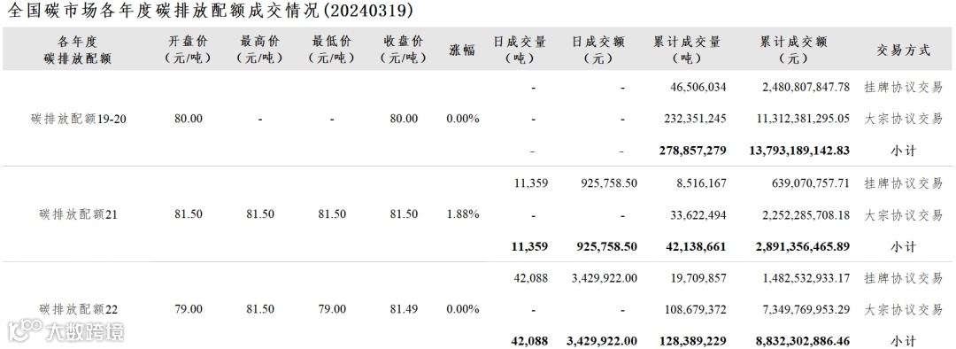 今日全国碳排放配额总成交量53,447吨,总成交额4,355,680.50元。