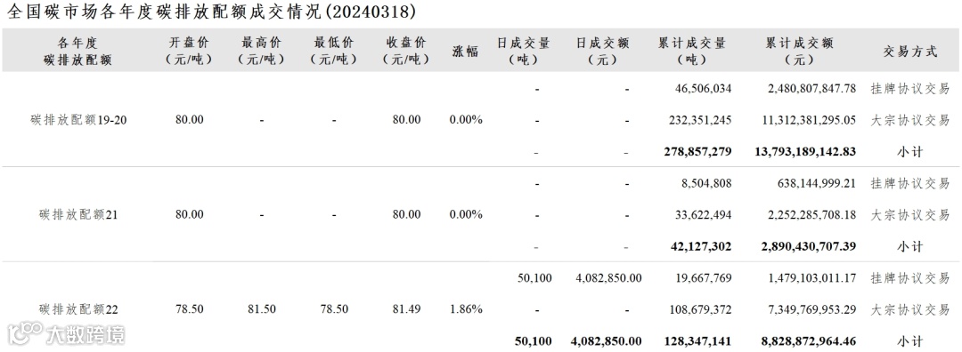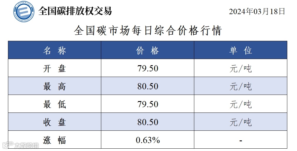 【行情】全国碳市场每日综合价格行情及成交信息20240318