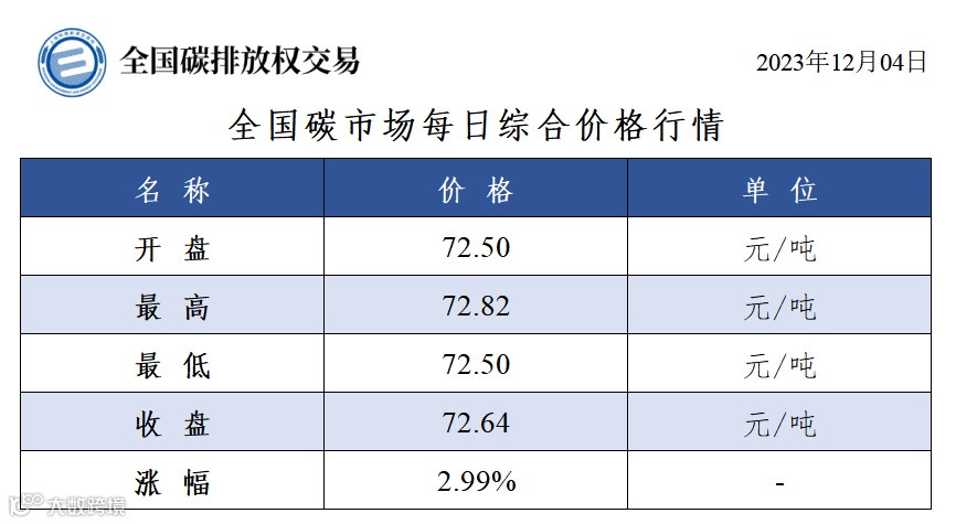 【行情】全国碳市场每日综合价格行情及成交信息20231204