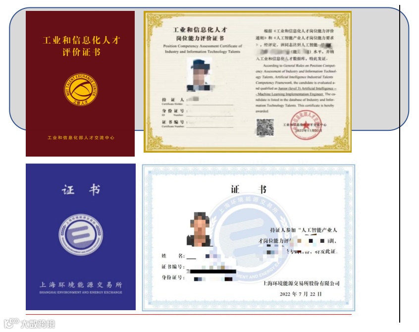 学员参加全部课程学习且线上考试合格后,将获得由工信部人才交流中心颁发的人工智能产业人才岗位能力评价证书、上海环交所结业证书。