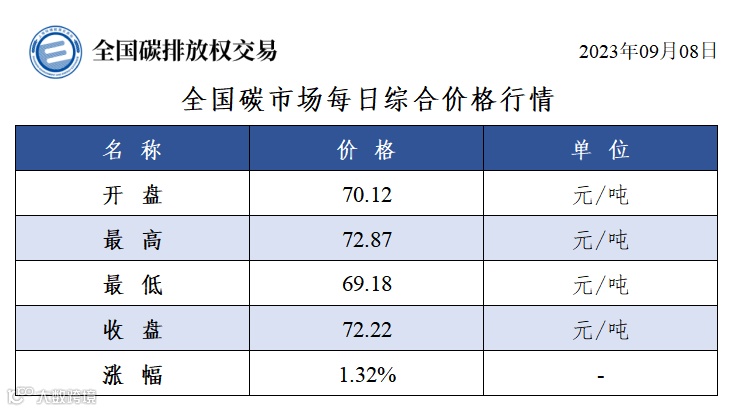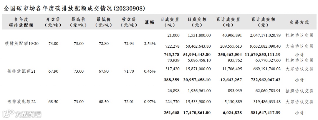 【行情】全国碳市场每日综合价格行情及成交信息20230908