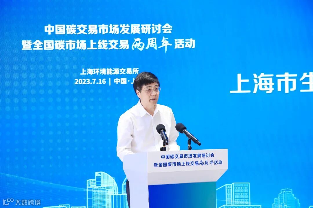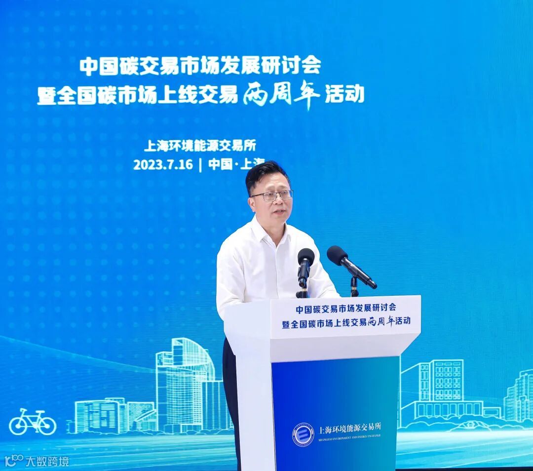 2023年7月16日,在全国碳市场上线交易两周年之际,由上海环境能源交易所主办的中国碳交易市场发展研讨会暨全国碳市场上线交易两周年活动顺利召开。生态环境部应对气候变化司副司长逯世泽,上海市生态环境局党组成员、副局长、一级巡视员吴启洲,上海联合产权交易所副总裁牛韧出席活动并致辞。