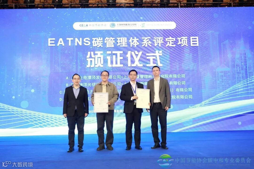 电有限责任公司、江苏林洋光伏运维有限公司四家企业颁发了EATNS碳管理体系评定证书。钛和认证(上海)有限公司可持续发展事业线总经理刘开成、上海
