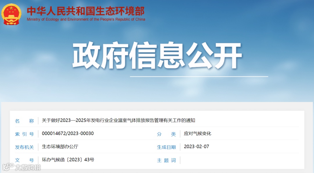 【重点关注】关于做好2023—2025年发电行业企业温室气体排放报告管理有关工作的通知
