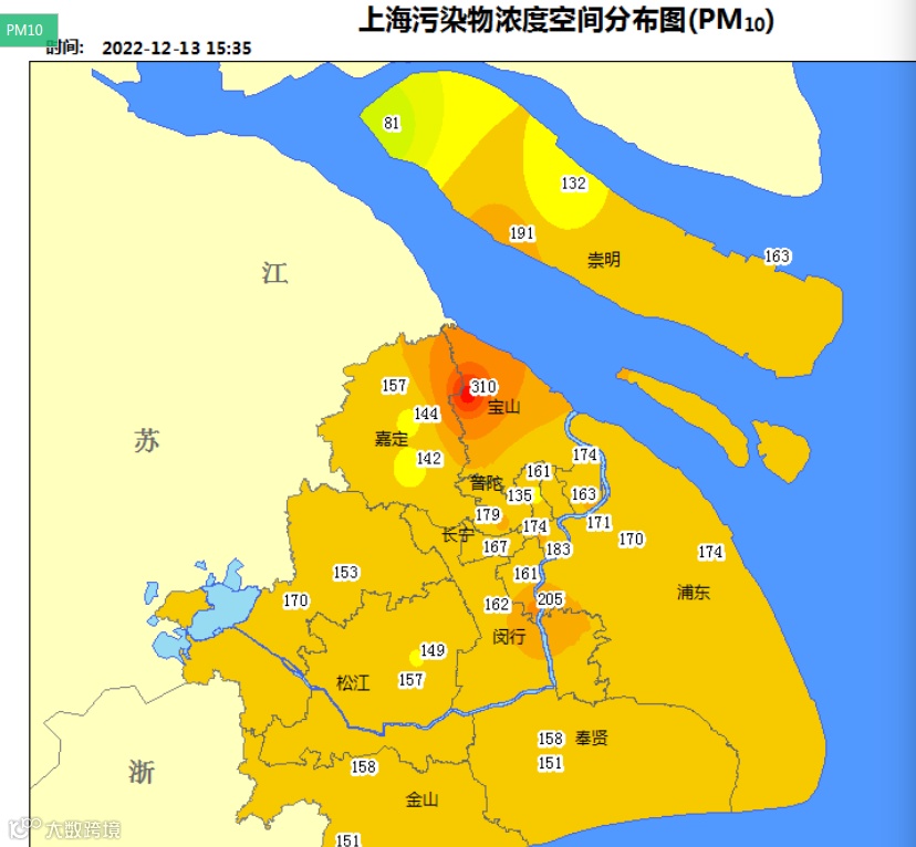 “接报,我区东北部PM10指数异常升高,迅速赶往现场处置。”2022年12月13日16时,宝山区生态环境局接到指挥部指令,要求迅速查明部分地域空气污染指标出现问题的原因。