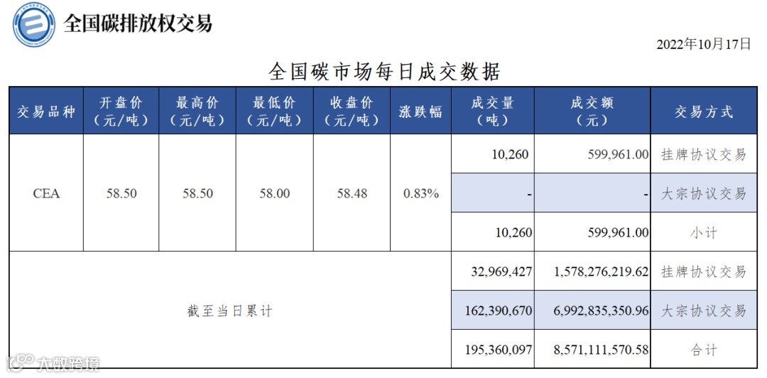 【行情】全国碳市场每日成交数据20221017