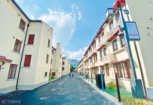 历经70年,上海第一个工人新村曹杨新村经过改造,焕然一新。图为曹杨新村内道路建筑。