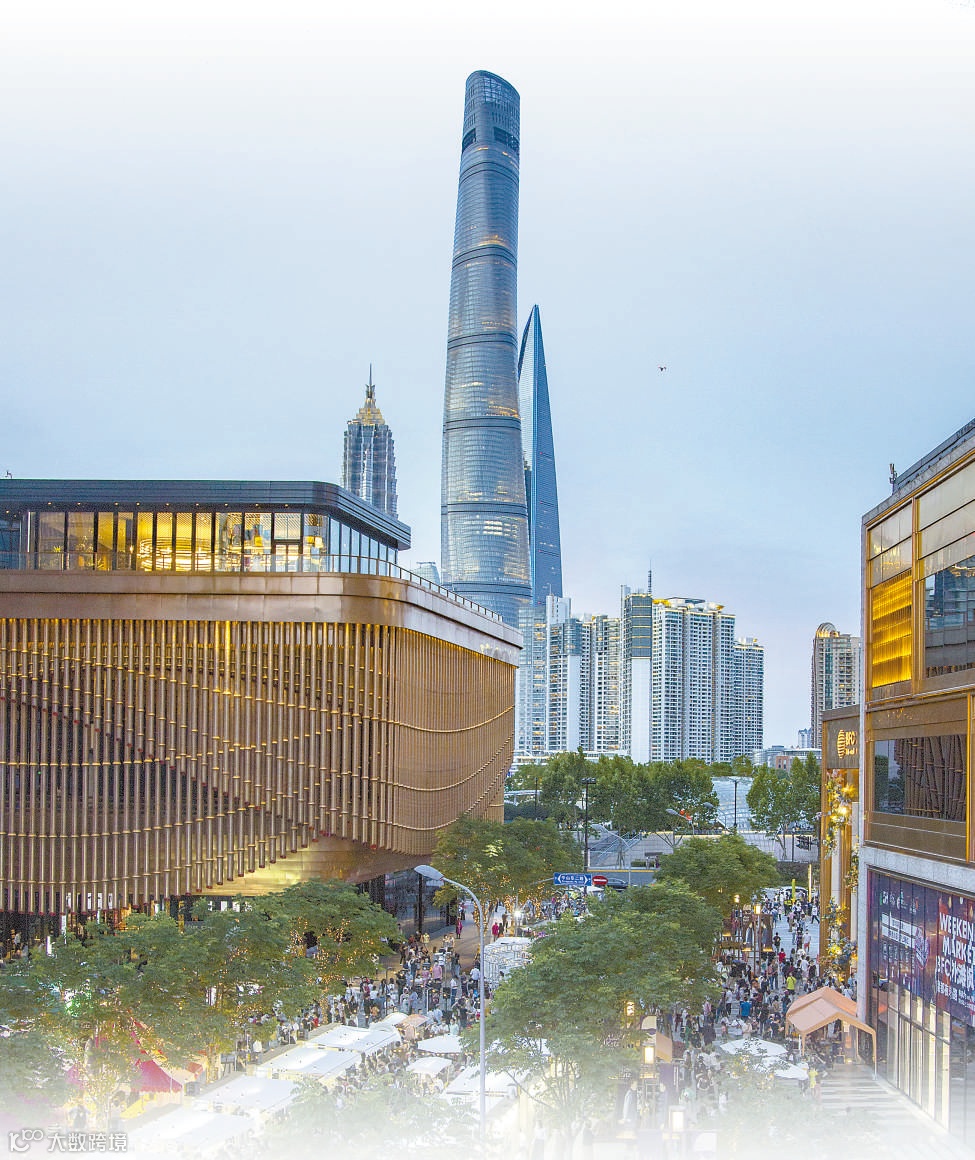 上海外滩金融中心枫泾路周末步行街景色。王初 摄