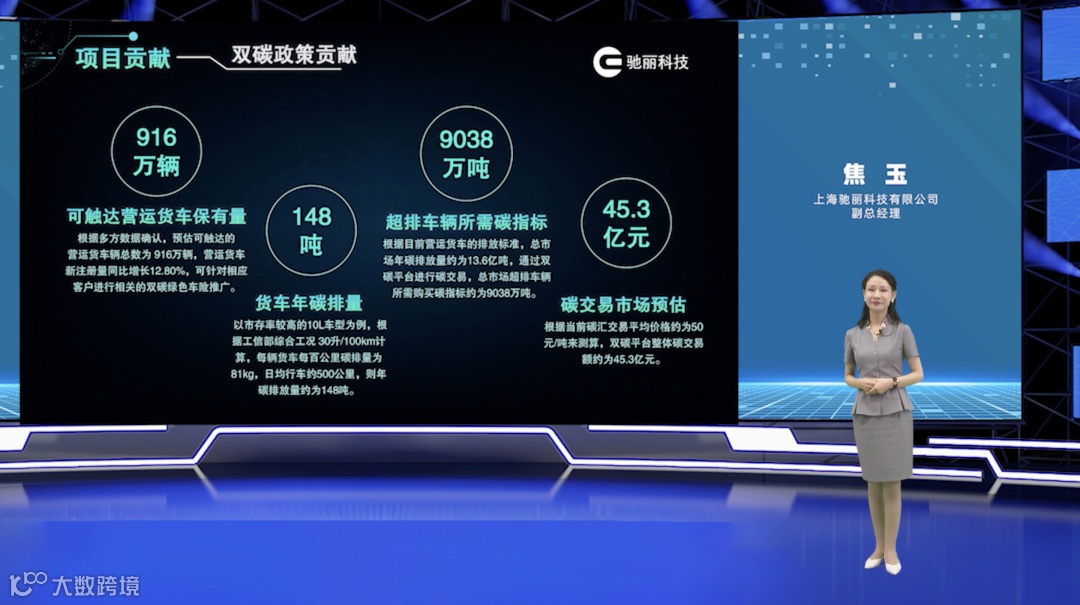 云论坛还举行了低碳产品发布仪式,上海驰丽科技有限公司与上海环境能源交易所、上海保险交易所、中节能咨询有限公司、中国联通数科重庆分公司、中国移动通信集团重庆有限公司、中国平安财产保险股份有限公司宁夏分公司、阳光财产保险股份有限公司共同发布——“双碳绿色车险”。上海驰丽科技有限公司副总经理焦玉详细介绍了国内首个道路交通行业的燃油车“碳中和”整体解决方案,通过大数据等科技手段解决营运货车超排问题,使营运货车在平台实现“碳中和”同时获得保险服务,以科技赋能产品,提供绿色低碳出行服务。