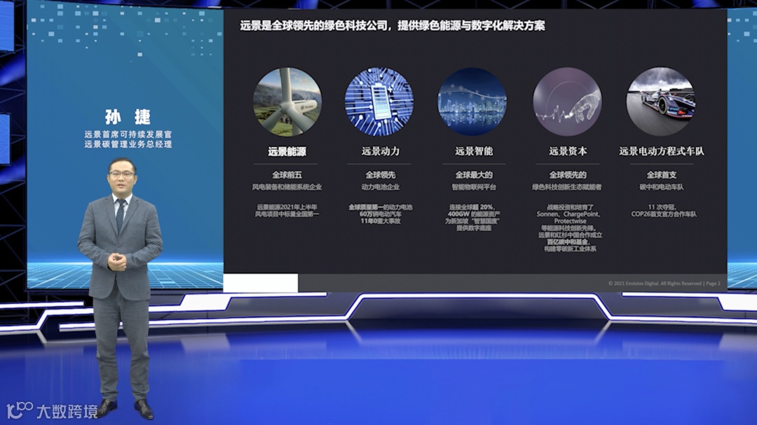 远景首席可持续发展官、远景碳管理业务总经理孙捷在主题发言中表示,作为全球领先的绿色科技公司,远景致力于为客户提供绿色能源和数字化的解决方案,通过EnOS智能物联数字底座和方舟能碳管理平台,连接产业上下游,一站式、端到端地提供全生命周期的零碳解决方案,帮助更多客户实现碳中和目标,推动行业零碳转型。