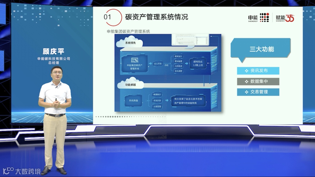 申能碳科技有限公司总经理顾庆平以“科技助力能源低碳发展”为题详细阐述了申能集团碳资产管理系统的功能及整体运作情况,目前,管理系统正在进行整体的数字化转型优化,由之前的被动管理变为现在的主动管理,全方位动态管理企业碳资产,助力控排企业低碳转型发展。