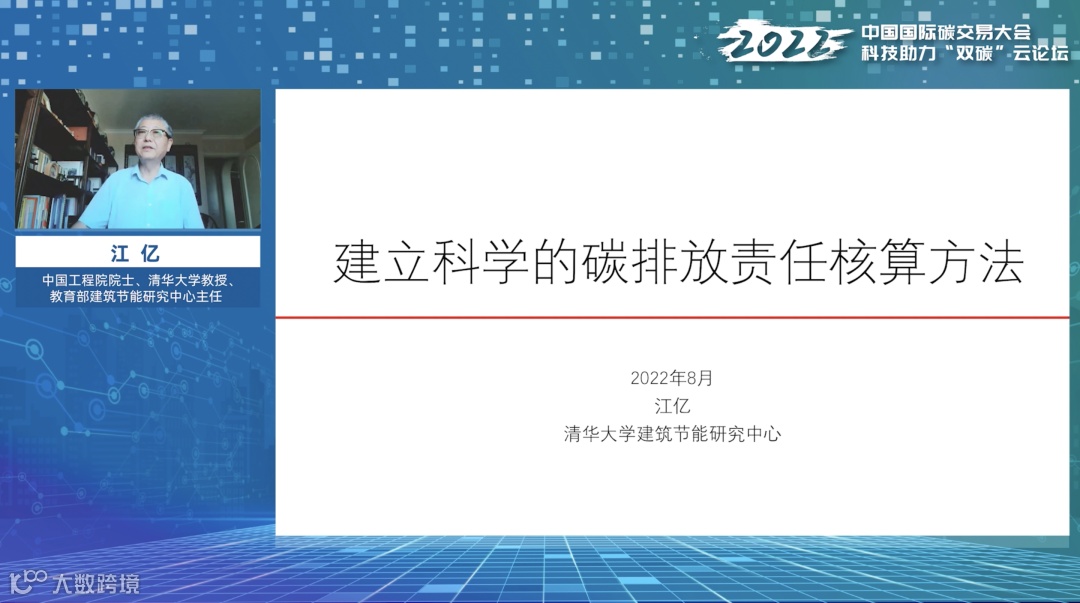 主旨演讲环节中,中国工程院院士、清华大学教授、清华大学建筑节能研究中心主任江亿发表主旨演讲,他建议要建立科学的碳排放责任核算方法,强调“生产侧抓强度,消费侧抓总量”是碳排放总量总量控制的重要原则。未来应进一步推进碳排放责任核算方法的深入论证和国际交流,建立产品基准值分类和数据统计体系,采用“基准值法”开展生产侧排放控制试点以及消费侧各地区减碳工作评价和控制试点等。