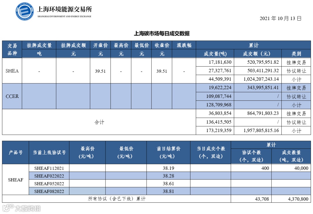 导读:今日上海碳市场CCER协议转让成交2,000吨。截止今日,上海碳市场所有现货品种累计成交量173,219,3