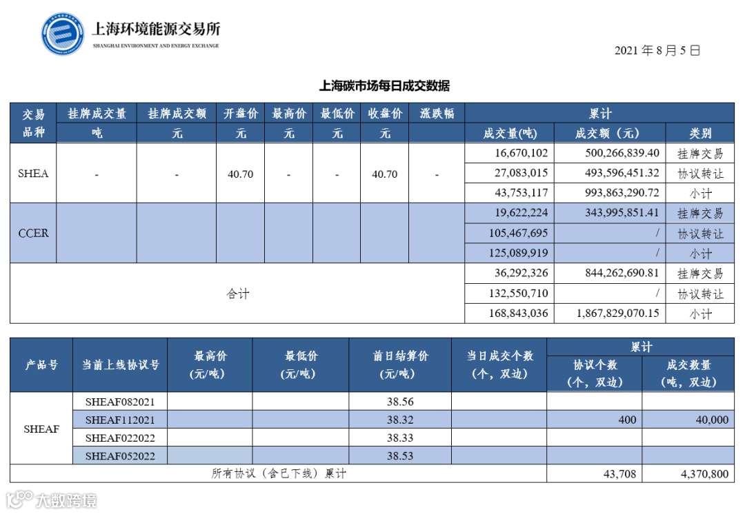 导读:今日上海碳市场CCER协议转让成交10,000吨。截止今日,上海碳市场所有现货品种累计成交量168,843,