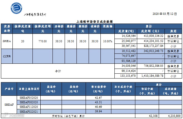 截止今日,上海碳市场所有现货品种累计成交量133,153,670吨,累计成交金额1,410,184,589.78元。其中,配额累计成交39,567,541吨,成交金额828,173,237.84元;CCER累计成交量93,586,129吨。上海碳配额远期产品累计成交数量4,210,800吨。
