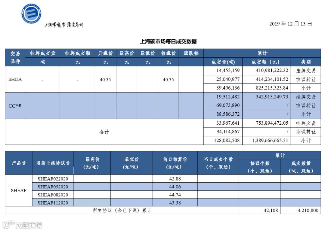 截止今日,上海碳市场所有现货品种累计成交量128,082,508吨,累计成交金额1,389,666,665.51元。其中,配额累计成交量39,496,136吨,成交金额825,215,323.84元;CCER累计成交量88,586,372吨。上海碳配额远期产品累计成交数量4,210,800吨。