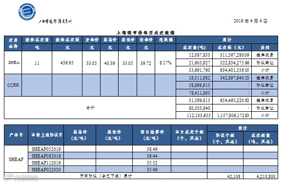 今日上海碳市场SHEA挂牌交易成交11吨,成交额436.95元,收盘价39.72元/吨,较上一交易日收盘上涨8.17%,CCER协议转让成交55,080吨。