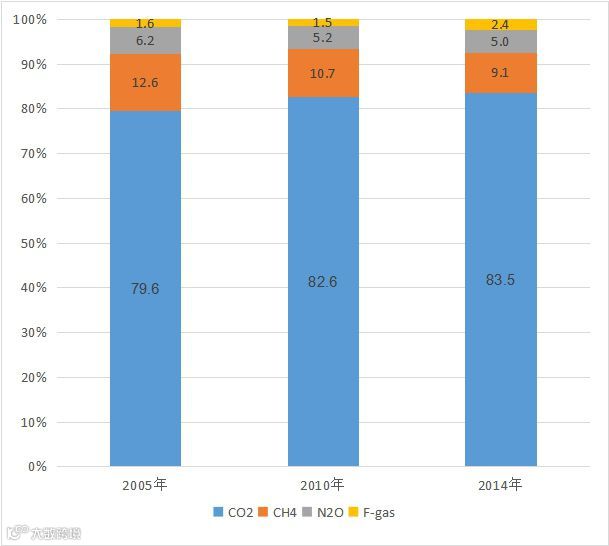 图1 2005-2014年中国温室气体排放种类构成
