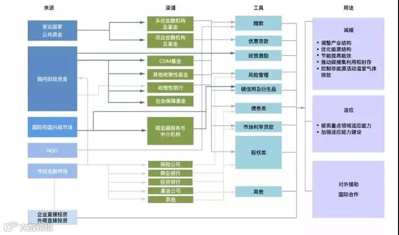 资金是解决气候变化问题最重要的实施手段之一, 《巴黎协定》第二条宗旨和长期目标中特别提出了气候资金的发展目标,即“使资金流动符合温室气体低排放和气候适应型发展的路径”。为解决应对气候变化的资金需求,我国政府在撬动气候资金方面进行了一些有益尝试,取得了初步成效。