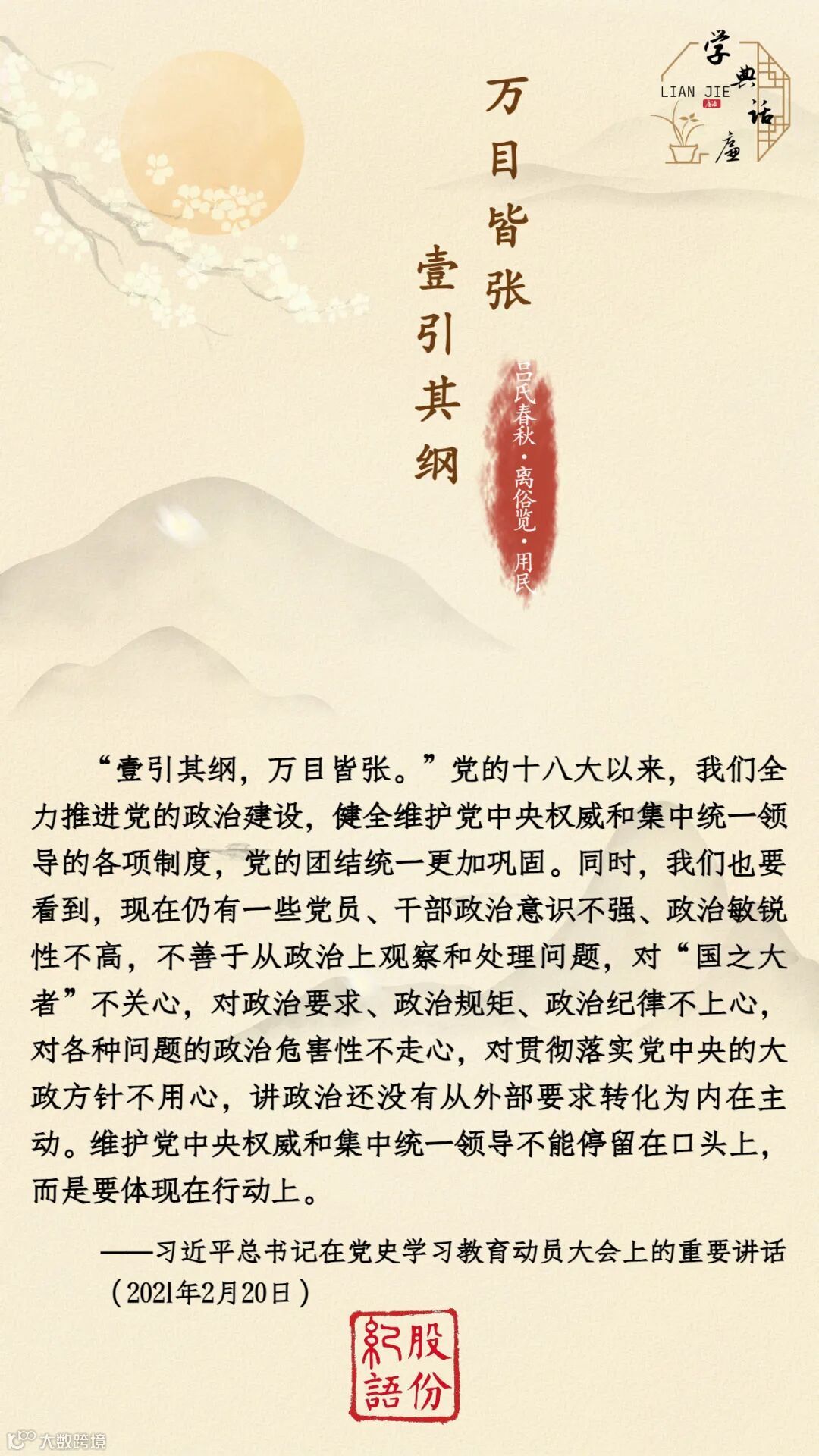 “壹引其纲,万目皆张”,语出《吕氏春秋·离俗览·用民》。“纲”指的是网上的大绳,“目”是网上的眼。“壹引其纲,万目皆张”的意思就是说,一提起网上的大绳,所有的网眼就都张开了。后概括为成语“纲举目张”,用来比喻做事抓住主要环节,以带动各个部分。