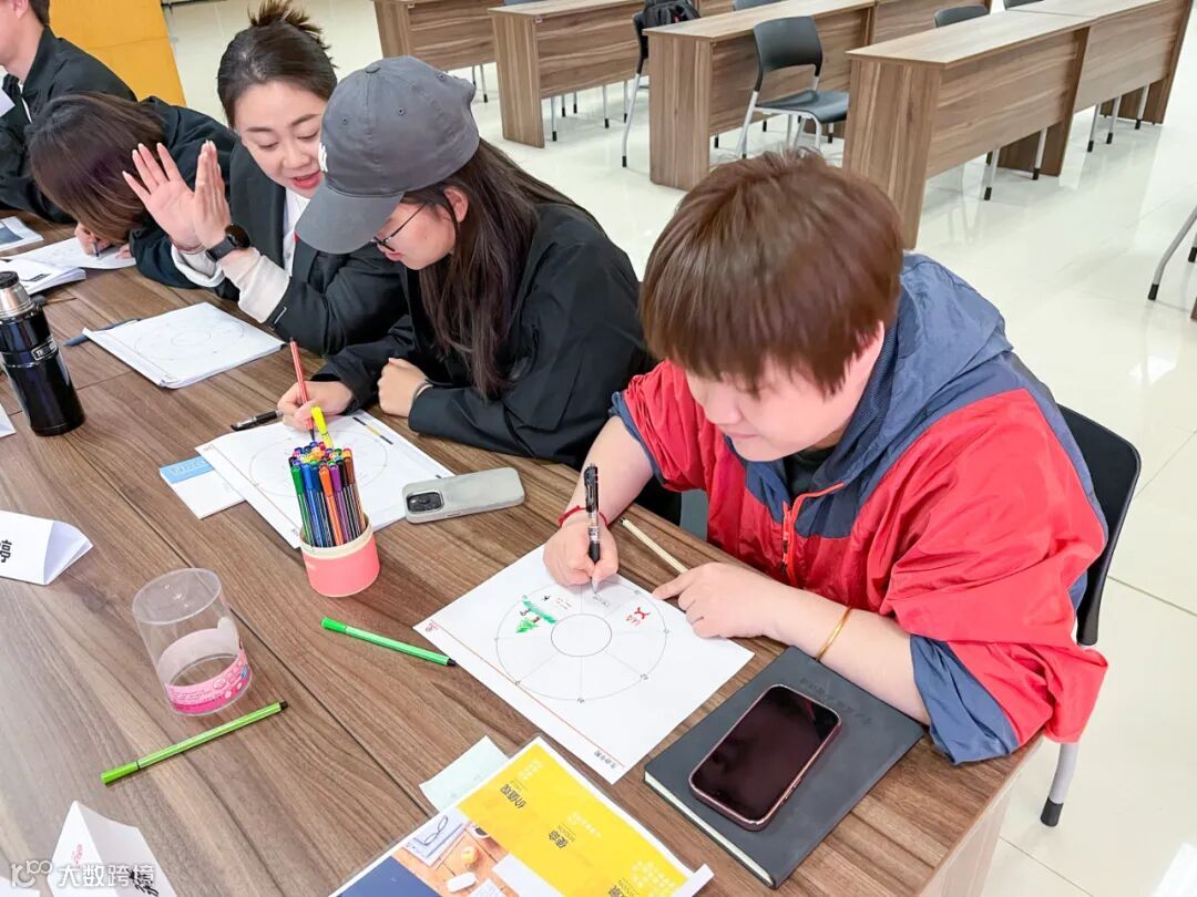 下午,王萍组织开展了“生命年轮”等一系列富有启发性的游戏。通过回顾和反思各自的人生阶段,学员们不仅更好认识了自己,也学会了分享自己的经历和经验。交流活动既增加了彼此的了解和共鸣,还加强了团队凝聚力。
