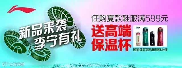 李宁折后购物满599元即送Discovery高级保温水杯一个