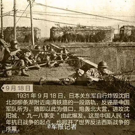 1931年,85年前的今天,九一八事变爆发,中华民族从此开始长达14年的艰苦抗战。14年,3500万军民伤亡,老人、妇女、婴儿惨遭屠杀!侵略,可能让一个国家亡国,也可能让这个民族觉醒!今天,每个中国人都应当牢记!警钟长鸣,吾辈当自强!